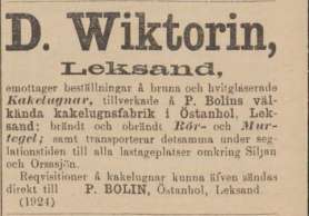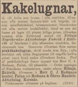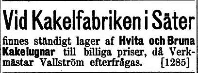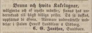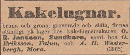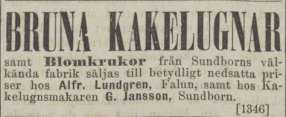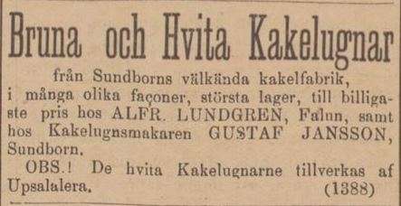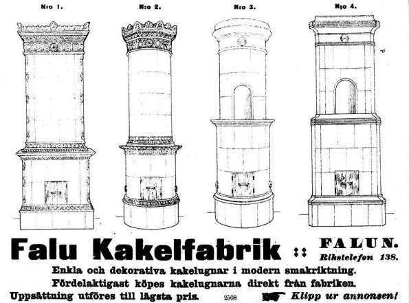 åt den i Falun. I varje fall har det under 1900-talet knappt gått att träffa på några tidningsannonser från Sundborns kakelfabrik, vilken tidigare varit en flitig annonsör.