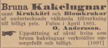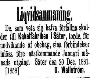 En tidningsannons som publicerades i Dalpilen den 14 augusti 1858 hade denna lydelse: