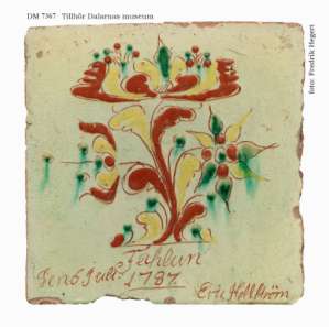 Troligen gjord i Sundborn 1732. Konservator Lennart Persson: Tillverkning och målning av skyddssockel 1987. Bildkälla: Carl Larsson-gården.