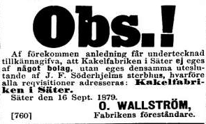 I Dalpilen går det genom en annons se att Olof Wallström arbetade som verkmästare vid Nittsjö året innan han blev ägare till fabriken. Enligt kyrkoarkivet var han emellertid ända fram till sin död 1911 bosatt i Säter.