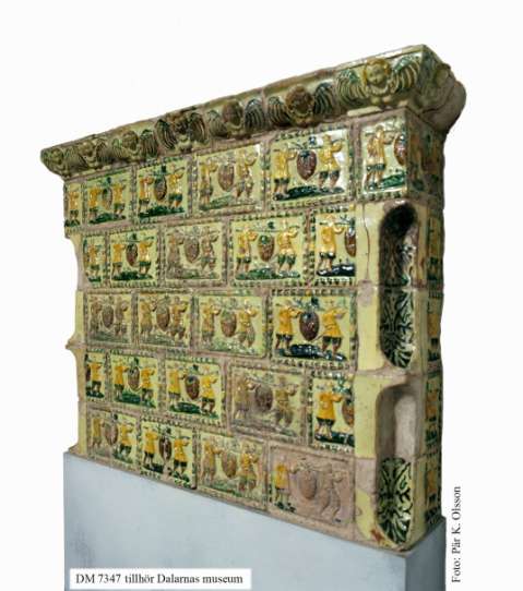 statusprylarnaingick kakelugnar, och denna från slutet av 1600-talet har sitt ursprung från Kolbergsbo i Sundborns socken. Bildkälla: Dalarnas museum. Inventarienummer: DM 7347. Foto: Pär K. Olsson