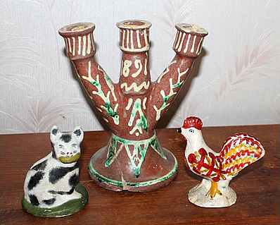 Bland de föremål som blev tillverkade vid verkstaden nämner Arne Juhlin dessa: Lerfat, tallrikar, spillkummar, krukor, krus, koppar, ljusstakar, men framförallt kakelugnskakel. Kaklen hade alltid en gulvit färg, ibland med gröna stänk. I kaklen fanns oftast även ett mönster med rutor där det omväxlande fanns en druvklass och en ros. Detta mönster hade kakelugnsmakaren själv funderat ut.