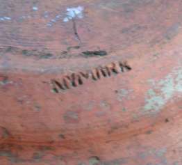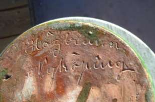 Nykiöping dn 20 novem 1755samt en svårtydd signatur. Bildkälla: Nordiska museet. Foto: Thomas Adolfsson. Möjlig tillverkare kan vara Jöns Lundberg, eller eventuellt Lars Marin.