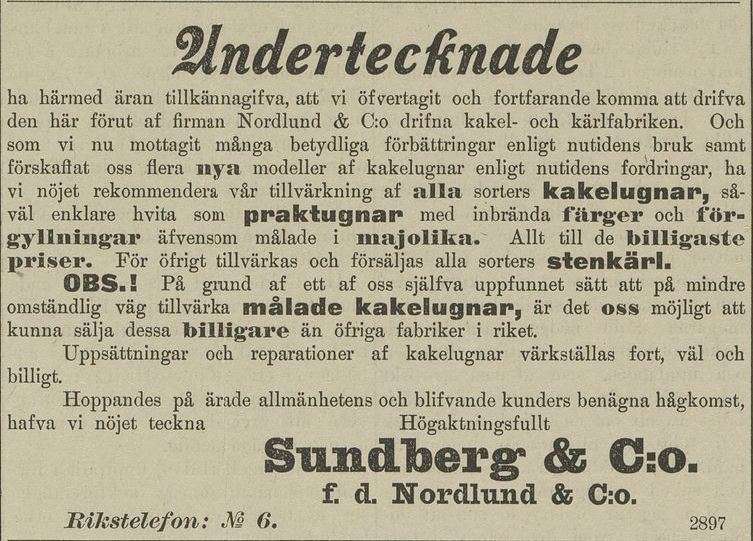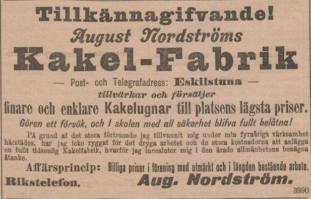 Fyra år senare flyttade han till Skänninge, och samma år vidare till Linköping. Året därpå, alltså 1841, anlände så gesäll Wallström till Malmköping och änkefru Strandbergs verkstad vid gård nr 48. Efter giftermålet två år senare skrevs sålunda kakelugnsmakare Wallström som ägare till rörelsen, vid vilken det enligt fabriksberättelsen fanns två personer i arbete, förutom då ägaren själv. En av dessa personer benämndes emellertid som barn. Produktionen bestod fortfarande av kakelugnar och stenkärl.