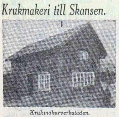 Arbetet i verkstaden har legat nere sedan den gamle krukmakaren Wetterstedt dog för omkring sju år sedan, berättar intendent Erik Andrén på Skansens kulturhistoriska avdelning. Under sista tiden tillverkade Wetterstedt mest blomkrukor som han sålde för 25 öre styck. Vid hans död ansåg sönerna emellertid inte att krukmakeriet lönade sig, och verksamheten nedlades. När verkstaden nu flyttas till Skansen, är det meningen att arbetet skall återupptas på samma sätt som i glashyttan.