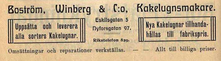 och son bosatt vid den egna fastigheten nr 38. Möjligtvis bestod Lindströms arbete efter flytten från gård nr 75-76 i huvudsak av uppsättning samt reparationer av kakelugnar. I samband med att J F Lindström lämnade gård nr 75-76 år 1866 etablerade sig där i stället kakelugnsmakare Karl Viktor Vallin. Han såg dagens ljus för första gången den 30 mars 1848 i Malmköping, och tretton år gammal kom han i lära hos krukmakare Huselius (den äldre).