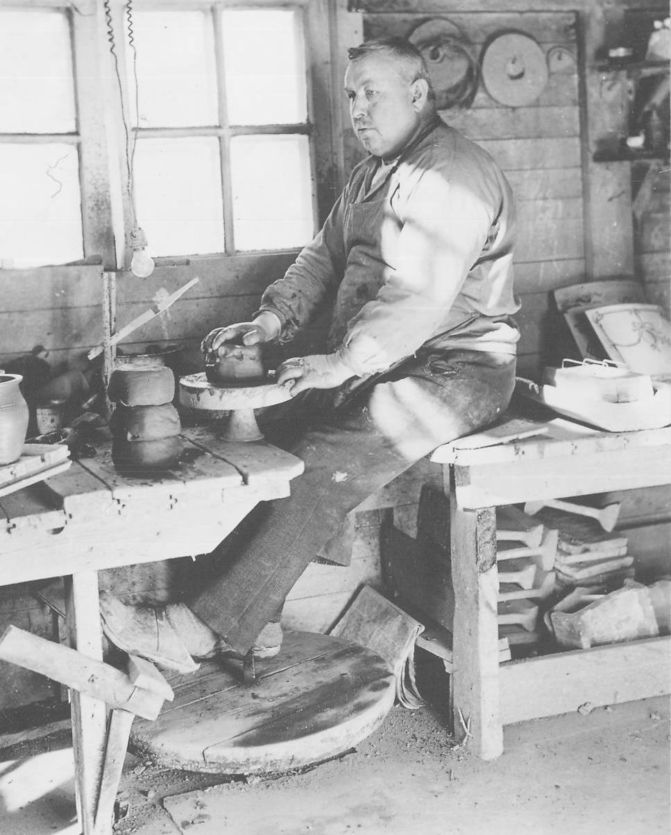 gå att återfinna för nedladdning. Efter tillstånd från Stockholms stadsmuseum visas här en bild från denna uppteckning, med Björnberg sittandes vid sin drejskiva.
