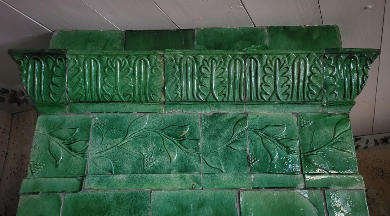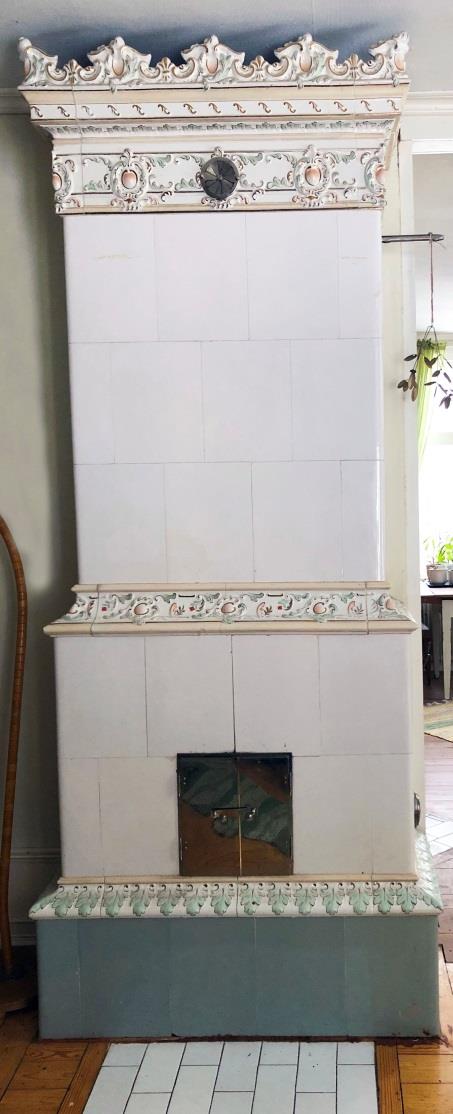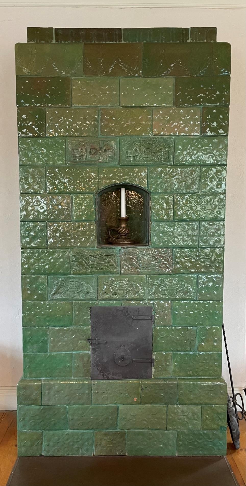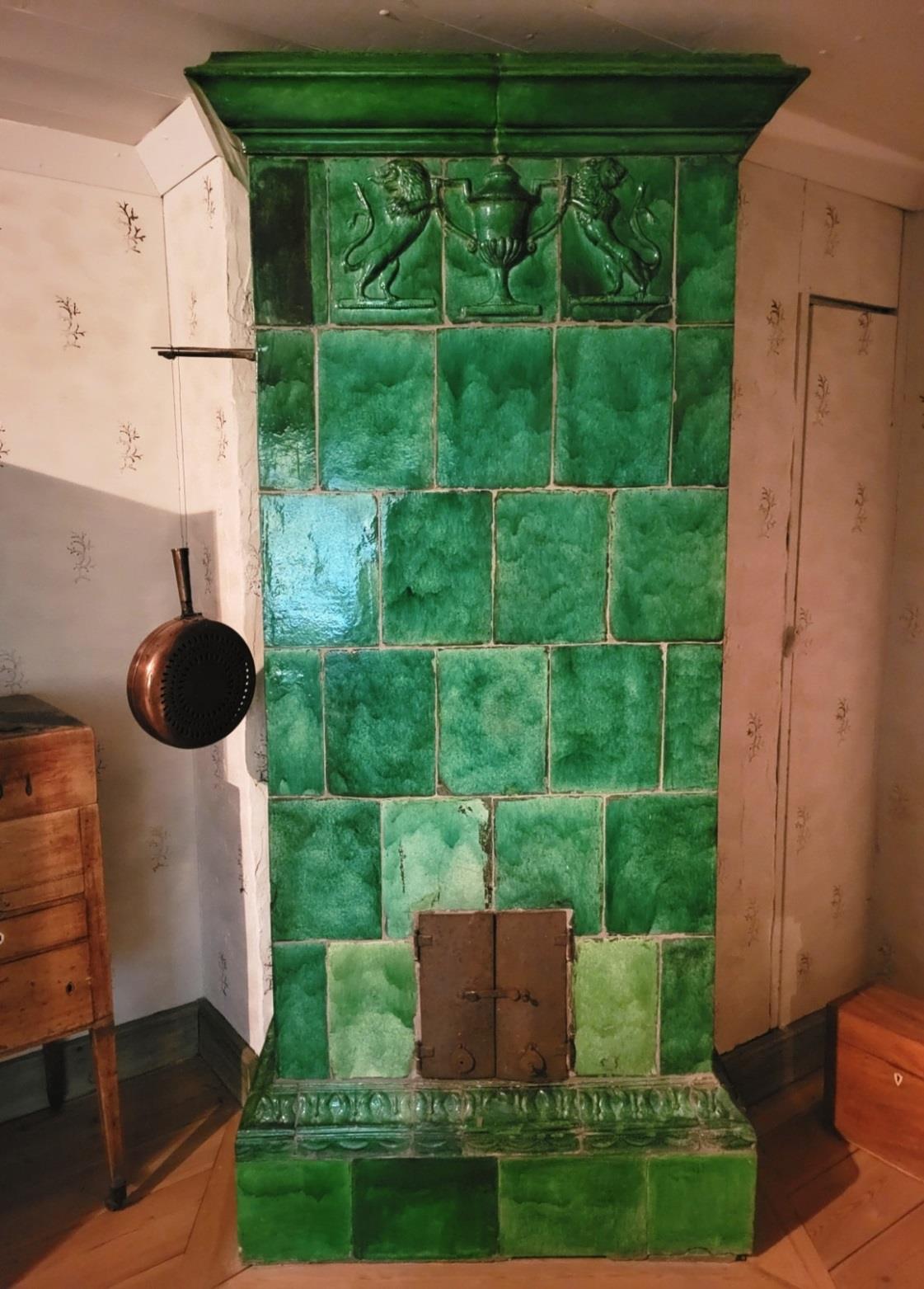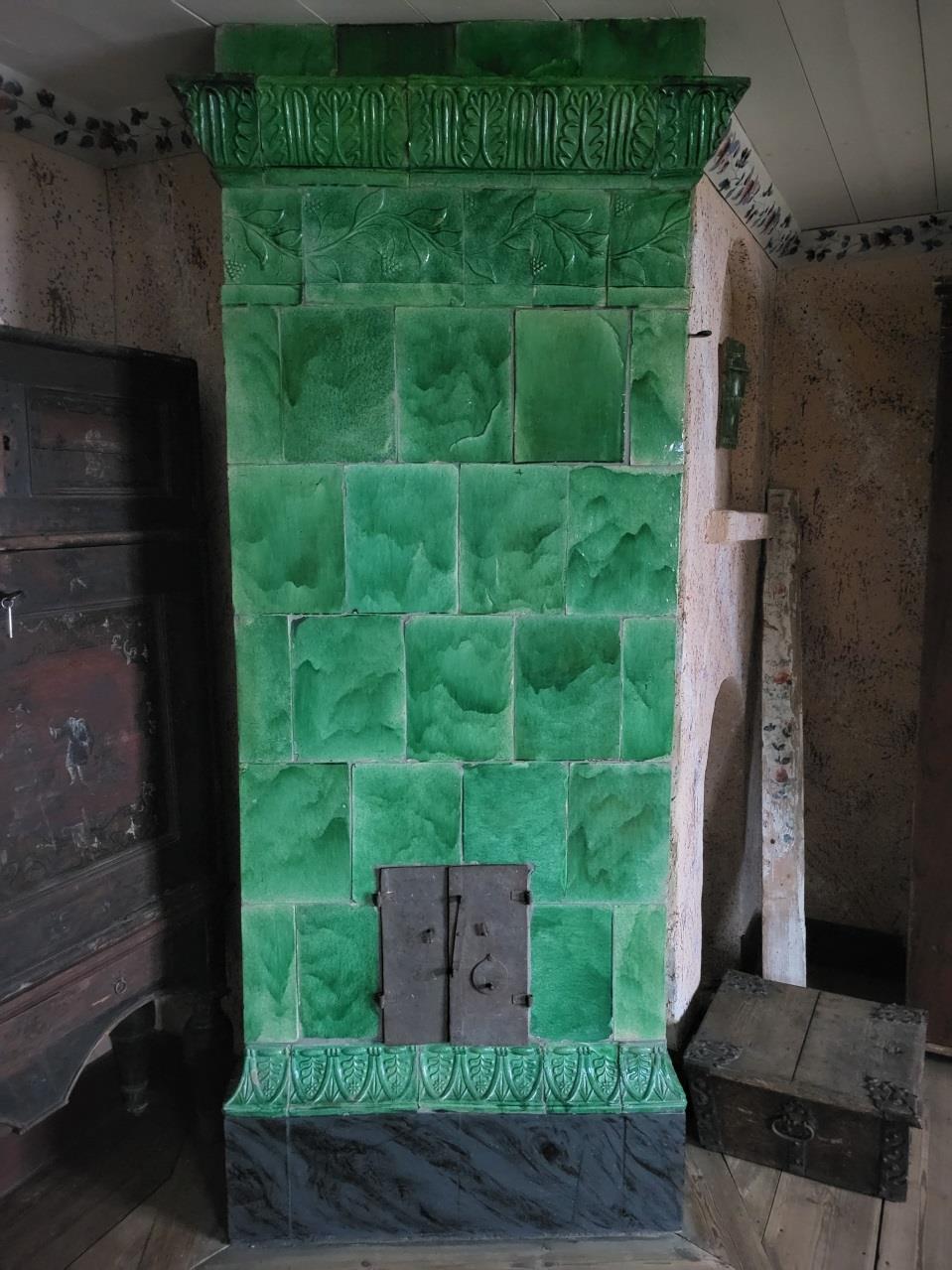 Denna kakelugn vid Humletorp Gård i Östra Ämtervik skall enligt uppgift ha blivit tillverkad i kakelugnsmakarverkstaden i Alvik vid Stora Bonäs.