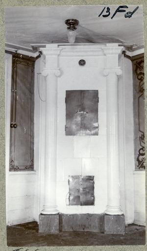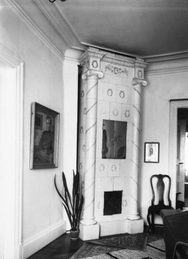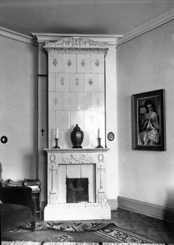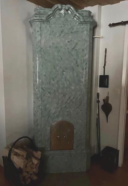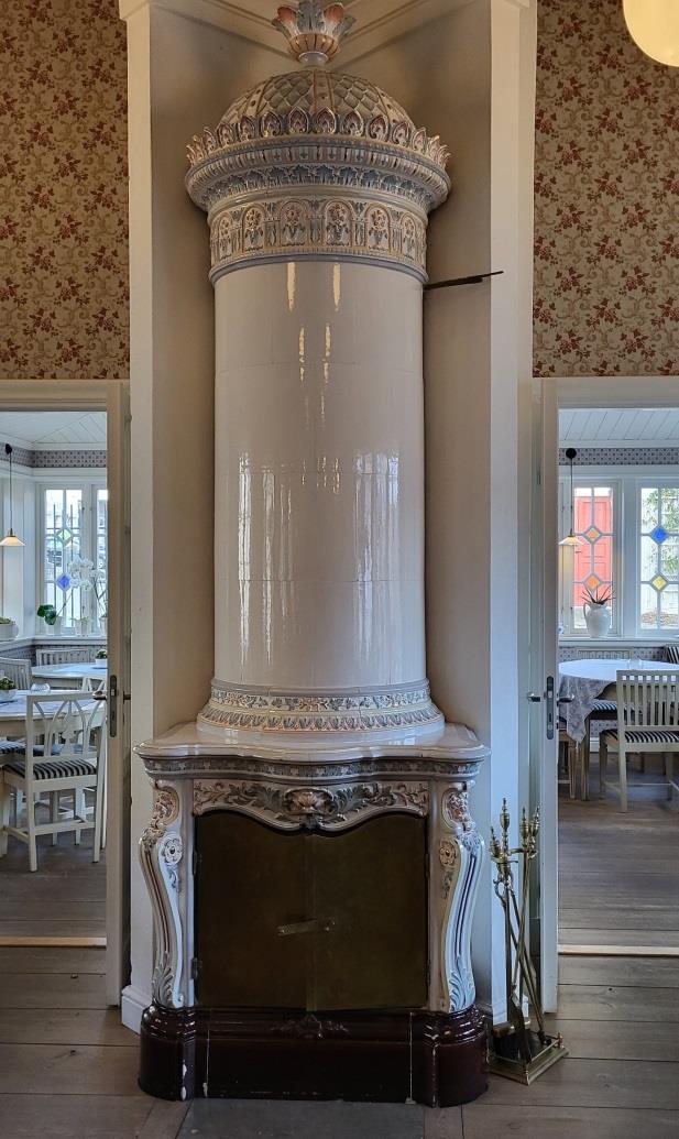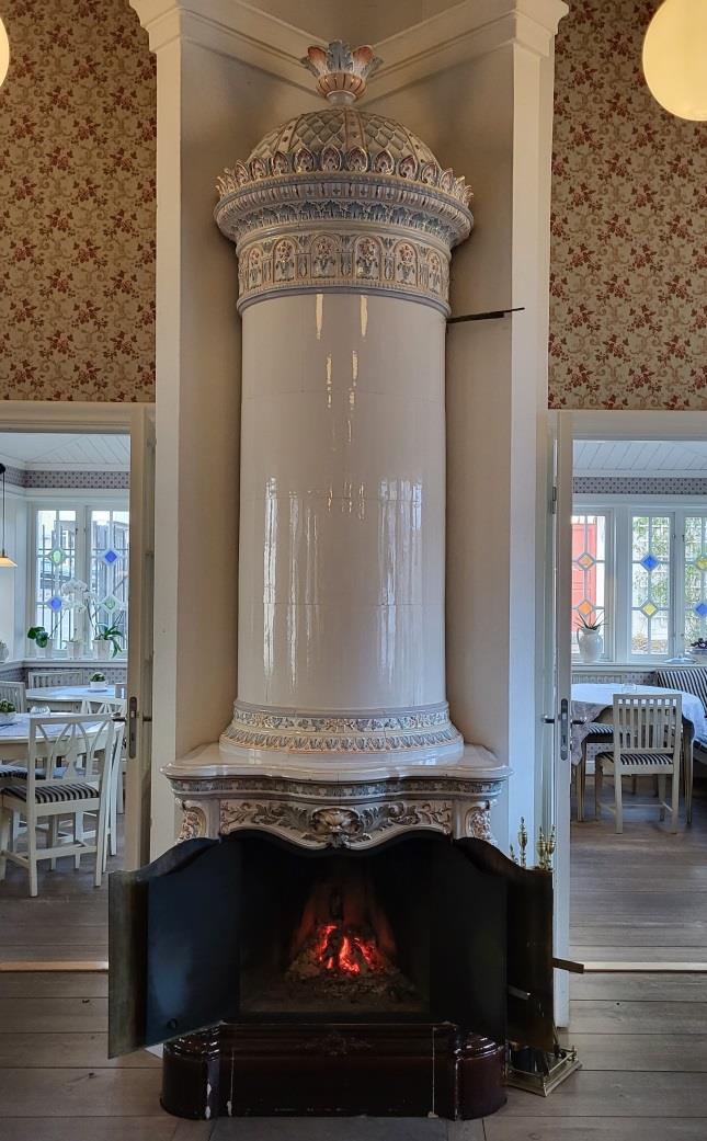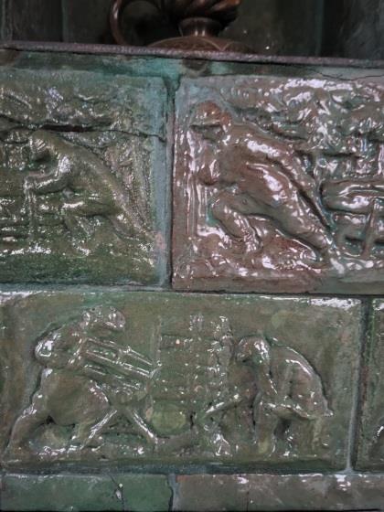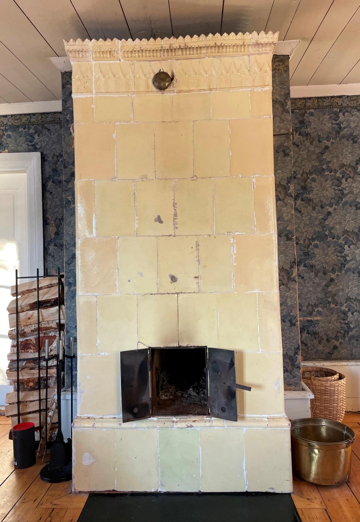 Denna kakelugn vid Humletorp Gård i Östra Ämtervik skall enligt uppgift ha blivit tillverkad i kakelugnsmakarverkstaden i Alvik vid Stora Bonäs.
