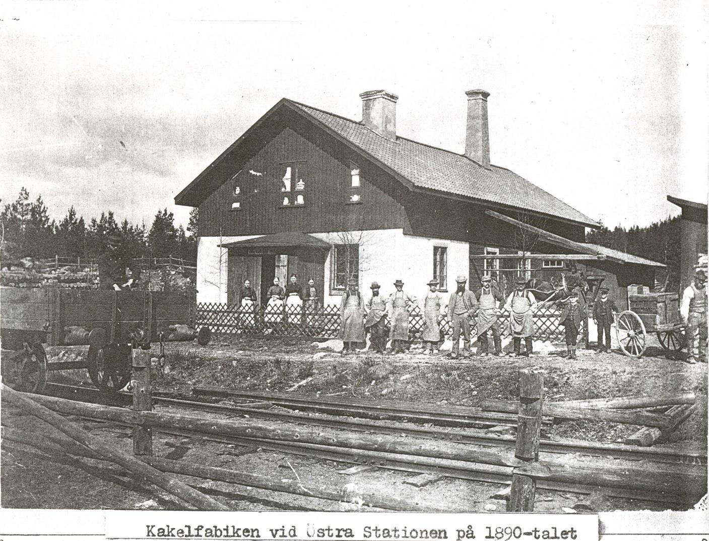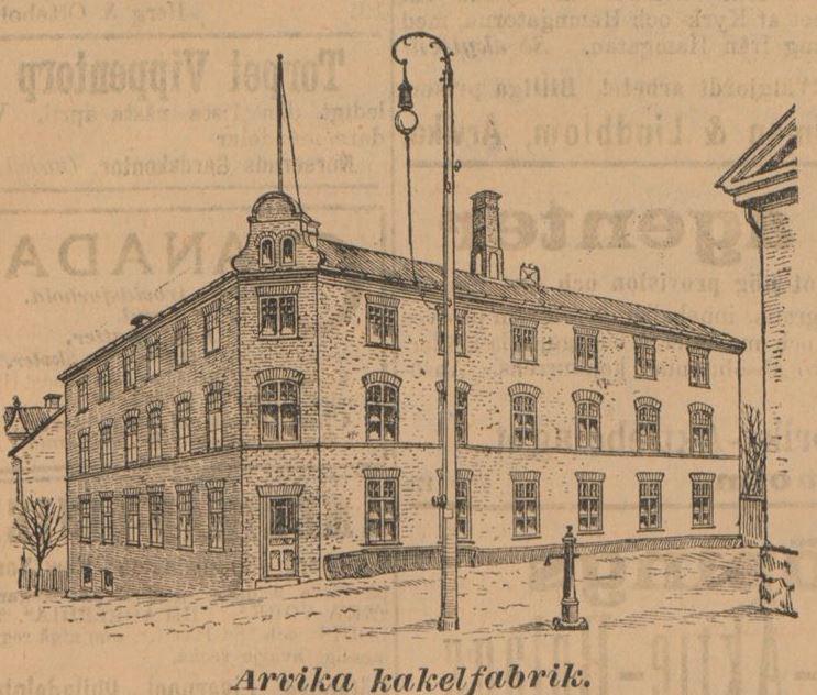 Kakelugnsmakare J.W. Dahlgrens kakelfabrik förtjenar ock ett särskildt omnämnande redan på grund deraf, att den är en af de äldsta af platsens industriella anläggningar. Under de 45 år den existerat, har den gjort sig fördelaktigt känd för goda fabrikat. Större parti af dessa - hufwudsakligen af Upsala-lera - säljas på Stockholm och Göteborg. Fabriken sysselsätter omkring 10 st. arbetare. Att Herr D. ombesörjer uppsättning af nya och reparationer af gamla kakelugnar, omnämna wi derjemte för fullständighetens skull.