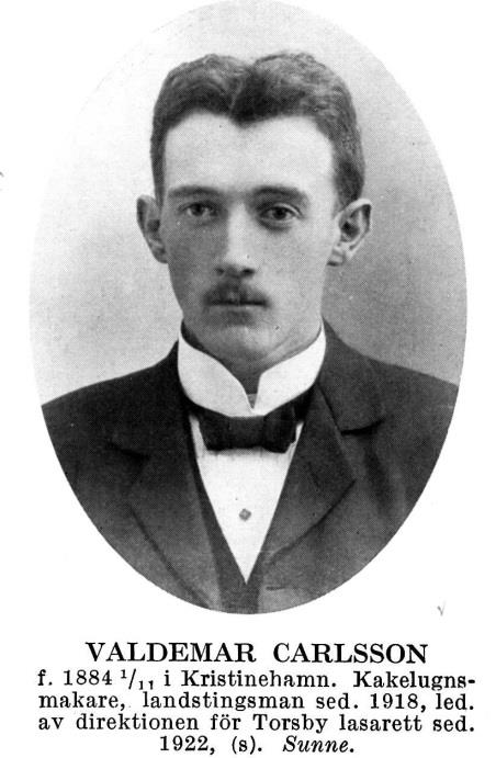 Sönerna Valdemar Carlsson, född den 1 november 1884, och Karl Anton Carlsson, född den 14 januari 1891, bägge i Kristinehamn, blev båda två kakelugnsmakare och startade 1936 en handelsrörelse för byggmaterial, vilken även inkluderade Bröderna Karlssons kakelaffär, som senare lokaliserades till Järnvägsgatan. I verksamheten ingick inledningsvis möjligen också reparationer och uppsättning av kakelugnar. Vid denna tid när kakelugnens era som huvudsaklig uppvärmningskälla i bostäder var förbi, torde golv- och väggplattor av kakel ha utgjort den mest framträdande artikeln i deras affär, och uppsättningen av sådana var gissningsvis också det som de yrkes- mässigt mest sysslade med.
